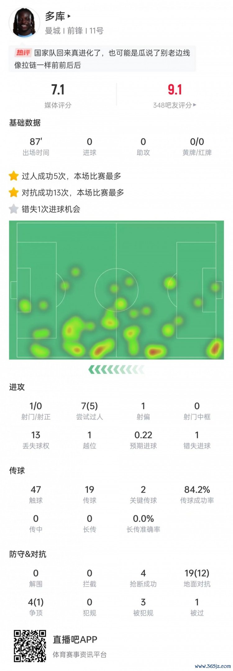 此役多库为曼城杆位出战,西甲新闻网成功过人5次、对峙 成功13次, AC米兰NBA直播均为全场最多。