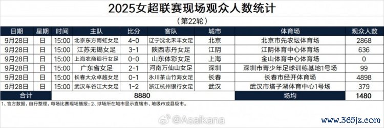 2025女超职业联赛 第22轮现场观赛人群 人数统计:北京主场作战 2868人