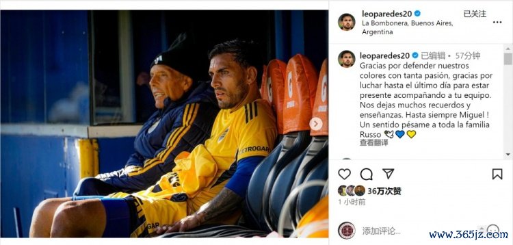 10月9日讯 博卡青年主帅鲁索去世,帕雷德斯社媒发文悼念。