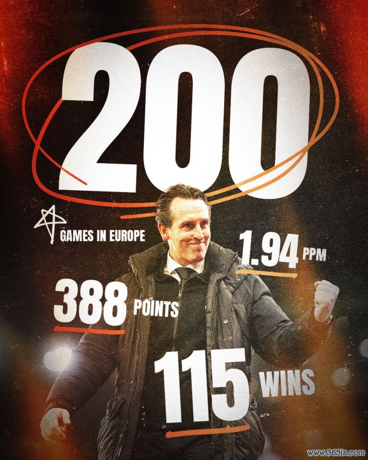 10月3日讯 阿斯顿维拉官方发布海报,祝贺主指导教练员埃梅里完成执教生涯在欧战的第200场里程碑。