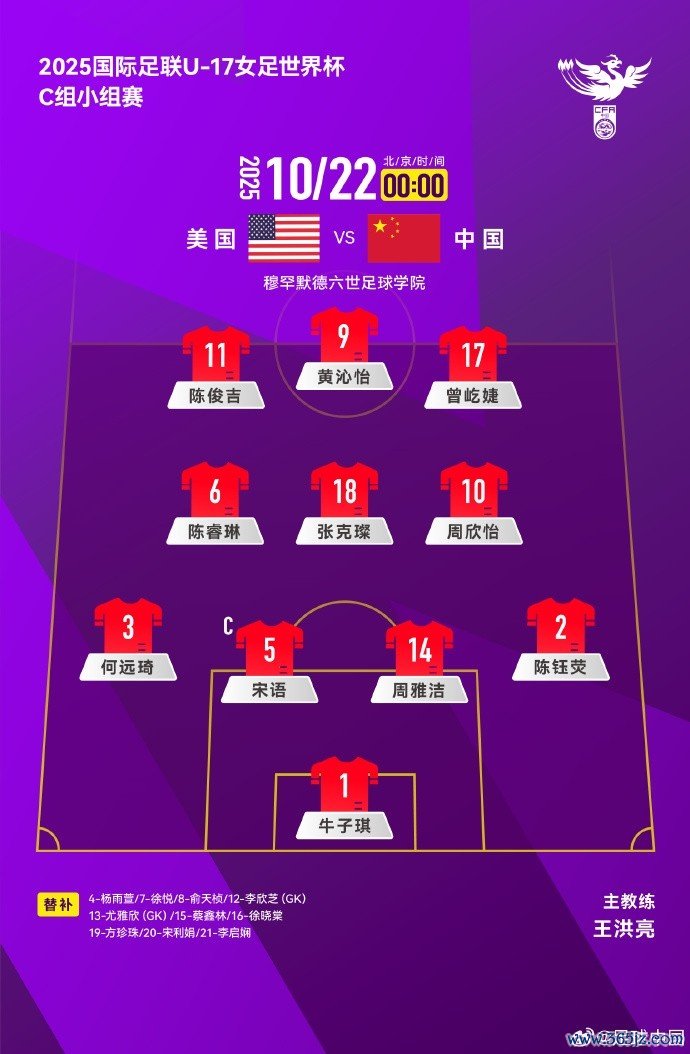 10月21日讯 2025国际足联U-17女足世界杯赛 C组小组赛第2轮,西甲新闻网体育直播美国队VS 中国队杆位名单出炉!
