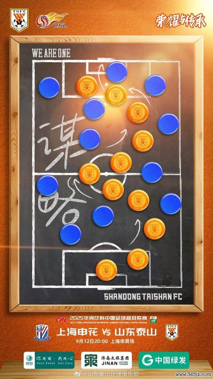 9月12日晚8:00,山东泰山将在上海八万人运动场 应战 申花。11日下午,泰山俱乐部发布了本场赛事 的预热海报,构图为一块策略 板,