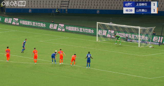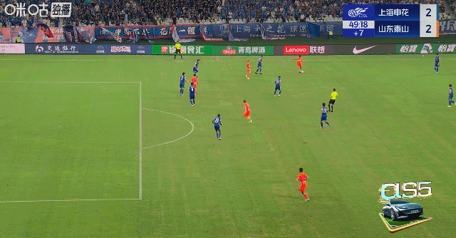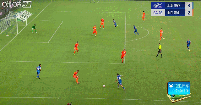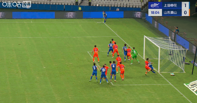 申花队第18分钟突然打破僵局,汪海健左侧底线球直接破门。