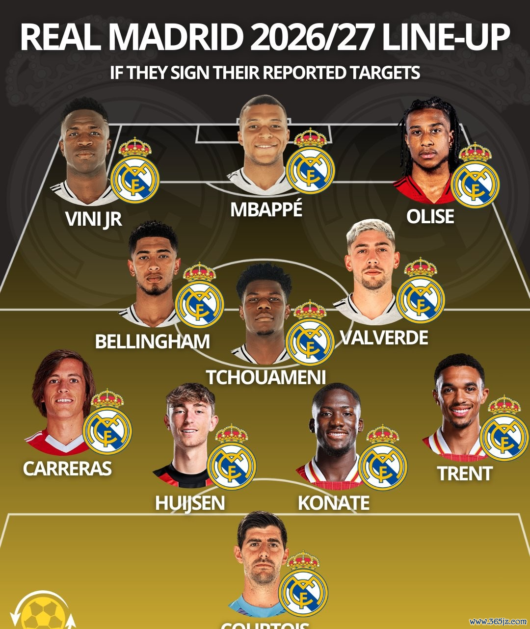 正因此,在外媒对于皇马26/27赛季的阵形 预测中,就包含了科纳特和奥丽塞这两大新援的加入来提升球队在右边路和后防的实力。