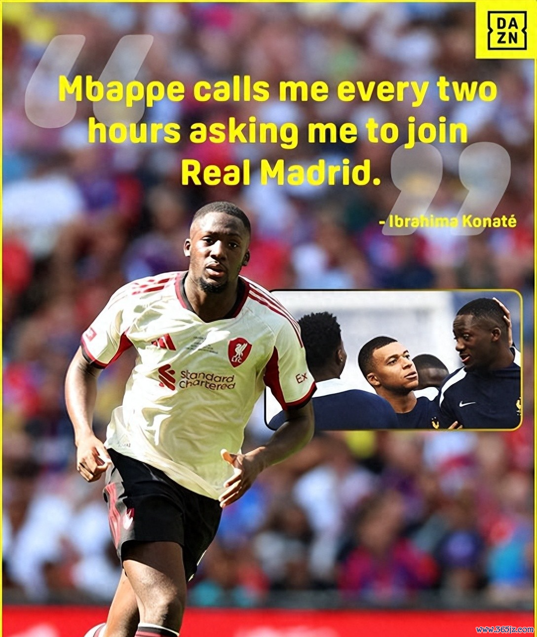 明年合约就要同利物浦到期而时至今日依旧未同利物浦达成续约的26岁法国中卫科纳特,在这个国际赛事 日期间接受采访时就曾表示“姆巴佩几乎每隔两个小时就要问我一次,要不要加盟皇马?”