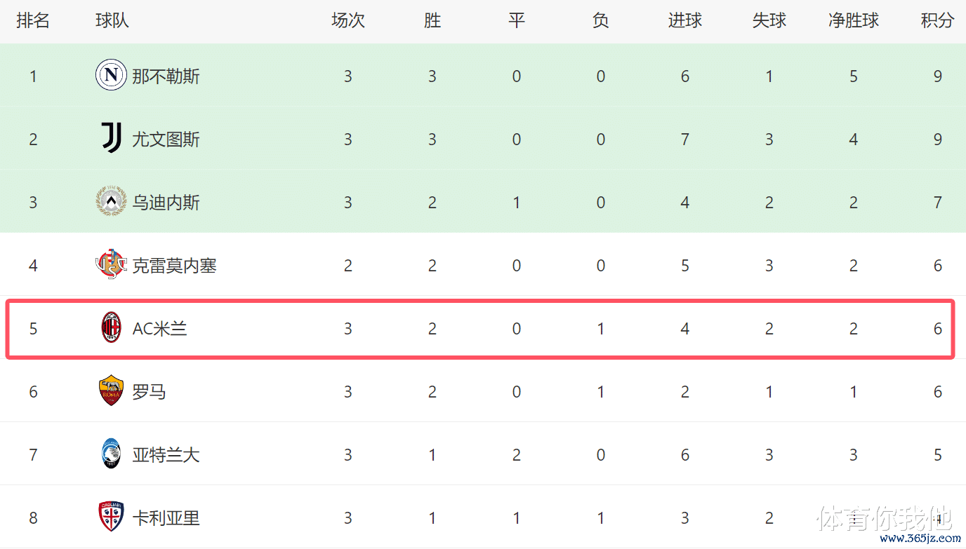 截至目前,前3轮过后,AC米兰拿到6分,在意甲积分榜上排名第5,追赶 榜首的那不勒斯和尤文3分,不过他们也领跑 同城死敌国米3分,后者在意甲遭遇2连败,如今竞技状态 异常低迷。