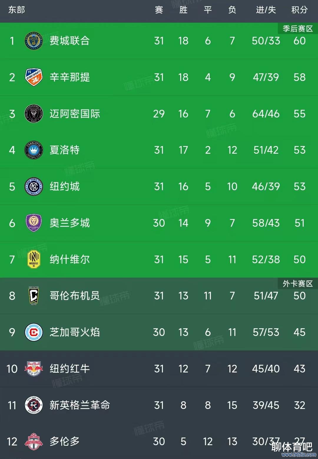 美职联最新积分榜: 梅西双响, 迈阿密4-0排东部第3, 纽约城第5