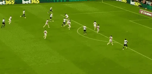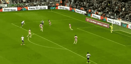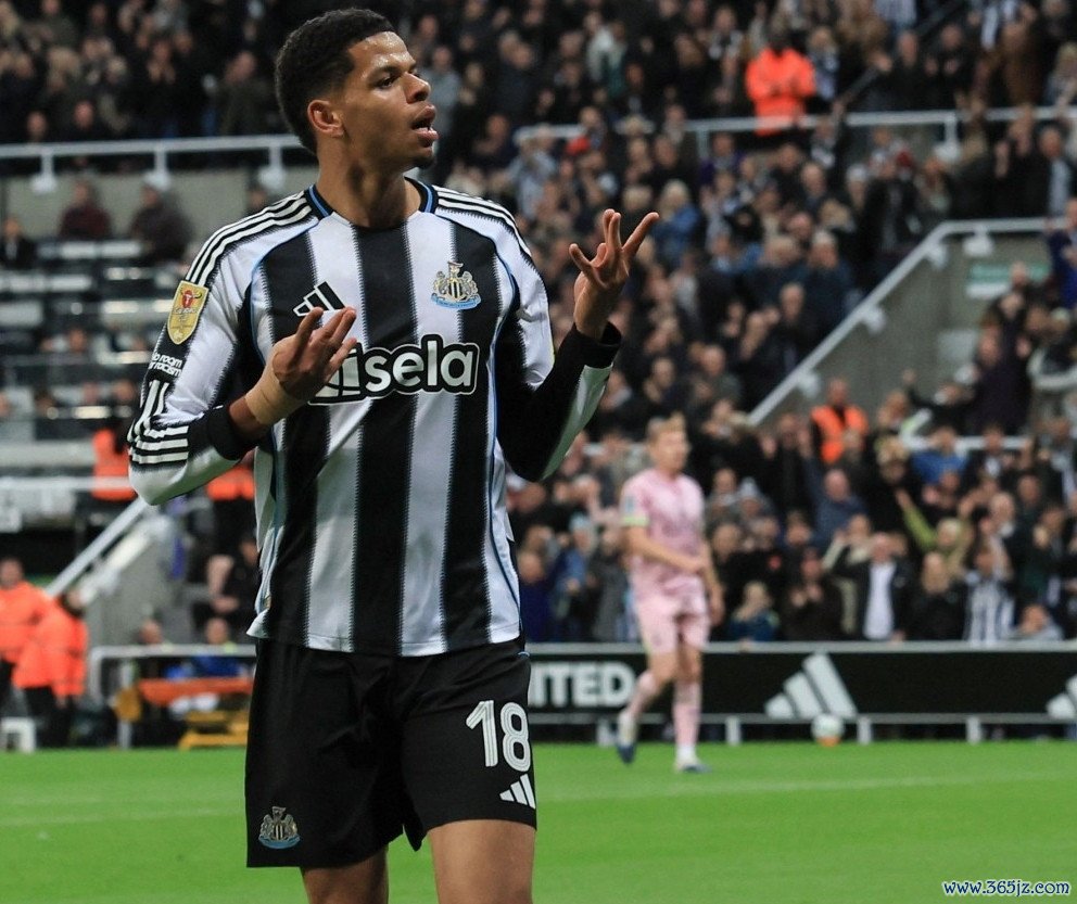 第75分钟,吉马良斯危险区域 偏左侧横传,乔林顿插上劲射破门,纽卡3-0领跑 。