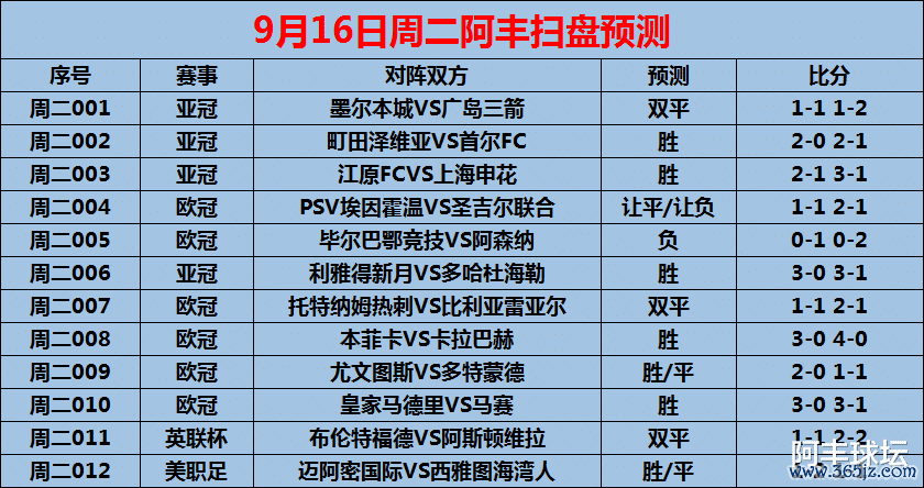 9/16周二赛事前瞻: 欧冠 尤文图斯VS多特蒙德(内附12场预测)